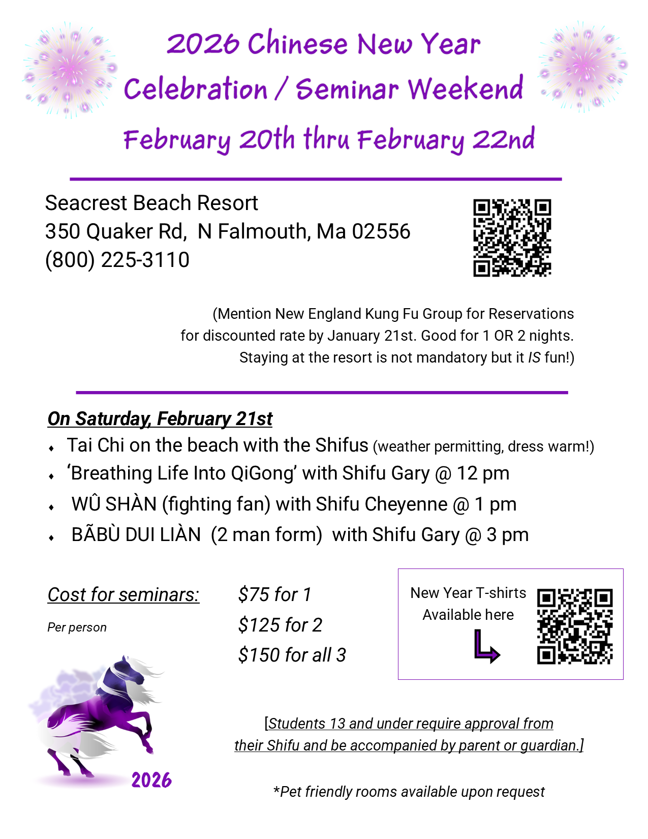 We’ll be celebrating Year of the Fire Horse on Cape Cod with multiple Kung Fu seminars!